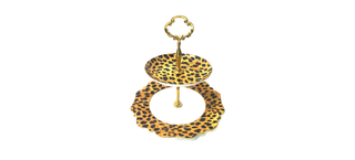 Bold leopard print, fresh white bone-free fine china and elegant gold trims. Wild, bold, elegant and ethical. This vintage inspired stand is for the entertainer.